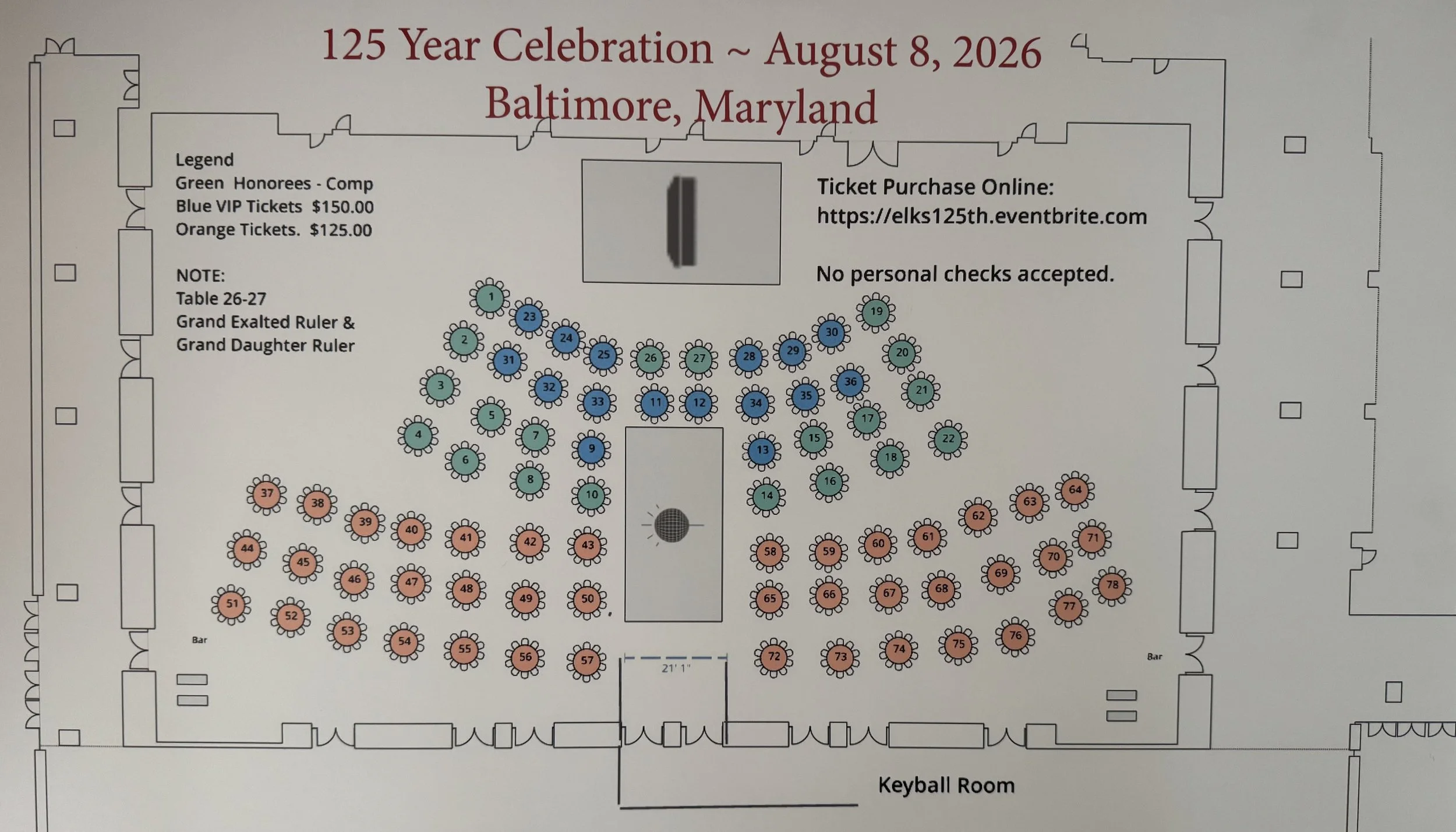 Send the seat/table donation/payment to elkszelle@ibpoew.org (Enrolled as Business Name: GRAND LODGE OF IMPROVED BENEVOLENT)